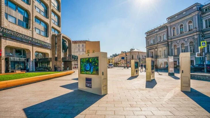 Перед зданием ТАСС на Тверском бульваре разместили шесть новых стендов с 12 медиа экранами, на которых жители и гости города увидят новостные сюжеты, архивные и другие визуальные материалы. Также заменили плитку на площади, а на подпорных стенках сделали лавочки.