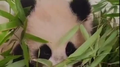 Гендиректор зоопарка также показала, как Катюша пытается грызть бамбук, однако пока что у нее это не получается.