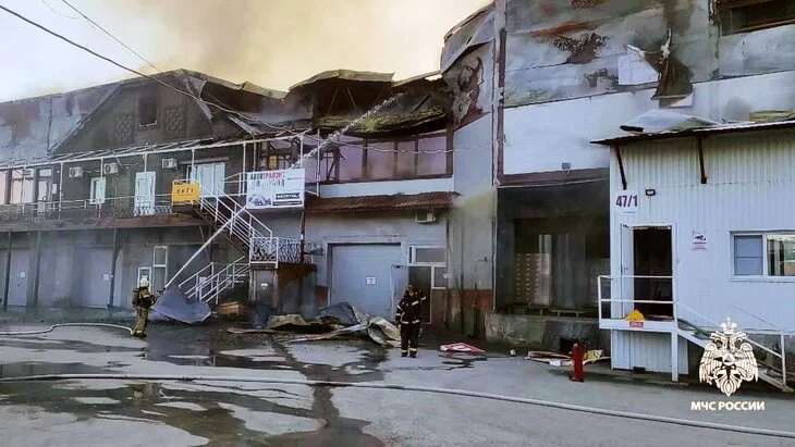 Склад загорелся в Новосибирске на площади 4,5 тыс "квадратов"