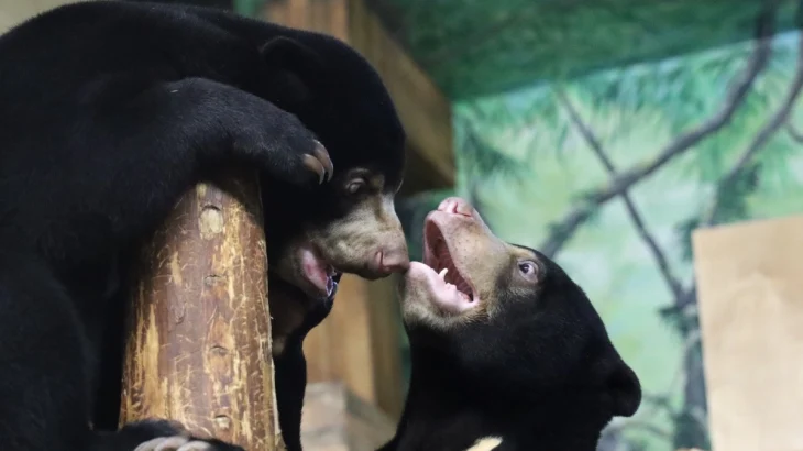 Экспозиция с малайскими медвежатами начала работать весной 2025 года. Сначала она была доступна один час в день, позже время показа увеличили до двух часов. Внутри дежурили волонтеры, контролировавшие поток посетителей, чтобы не создавать стрессовых ситуаций для животных.