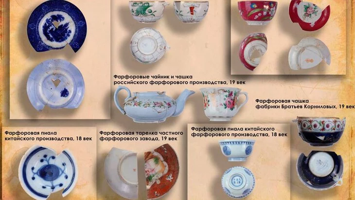 Мэр отметил, что из найденных фрагментов реставраторы смогли восстановить коллекцию чайного и столового фарфора. Так, есть изделия, которые были произведены на небольших заводах Российской империи, заводах Кузнецовского и братьев Корниловых, а также фабрике Гарднера, указал Собянин, добавив, что присутствуют фрагменты и китайского фарфора начала XVIII века.