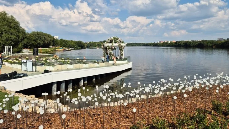 Собянин также посетил созданный недалеко от места впадения в Москву-реку реки Жужи свадебный сад с церемониальной площадкой на воде и павильоном для гостей на 200 человек. Здесь 30 июля прошла первая церемония бракосочетания.