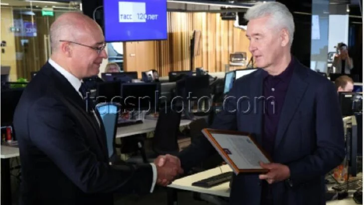 Собянин поздравил ТАСС со 120-летием и ознакомился с процессом выпуска новостей