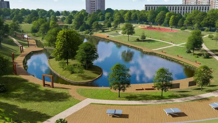 Помимо благоустройства, специалисты проведут очистку от ила и мусора на дне двух небольших водоемов возле 4-го корпуса дома 131, а также укрепят берег прудов. Для горожан устроят деревянные настилы, которые будут выполнять не только роль пешеходной, но и смотровой зон.