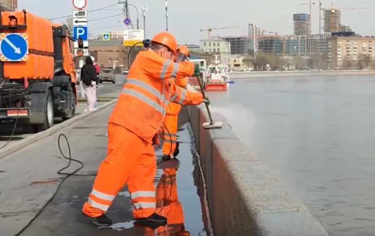 После зимнего сезона специалисты почистили 78 набережных Москвы. В их числе Кремлевская, Фрунзенская, Котельническая, Крымская и Пречистенская набережные.