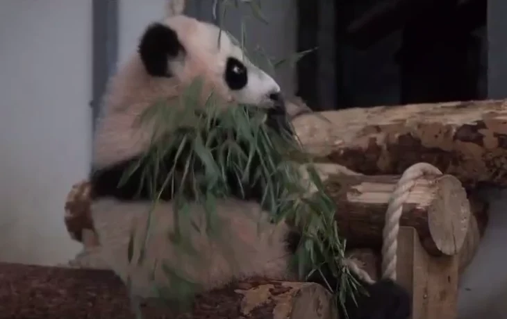 «Спинку держит прямо»: Московский зоопарк показал новые навыки панды Катюши