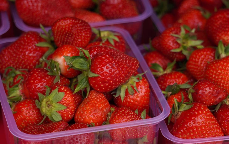 Клубника должна быть однородного яркого цвета, а белый кончик и зеленые пятна могут свидетельствовать о незрелости продукции. Упаковка также играет роль - она должна быть деревянной, картонной или пластиковой.