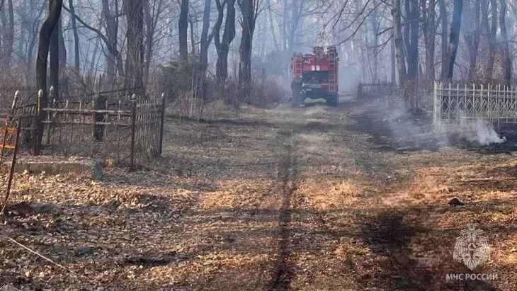 Сухая растительность загорелась около кладбища во Владикавказе на 3 тыс "квадратах"