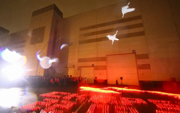 У стен «Крокуса» зажгли фигуры журавлей в память о жертвах теракта