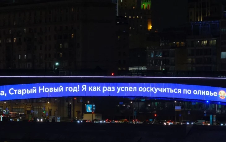 - Ура, Старый Новый год! Я как раз успел соскучится по оливье, - следует из подписи на медиаэкране, снимок которого был выложен в Telegram-канале Метромоста.