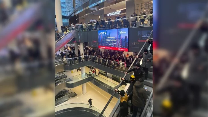 Из-за блокировки лифтов на первом этаже башни находится большое количество людей.