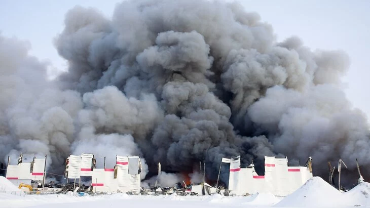 Пожар произошел на складе Wildberries в Шушарах утром 13 января. Площадь возгорания изначально составляла тысячу квадратных метров, потом она увеличилась до 50 тысяч "квадратов".