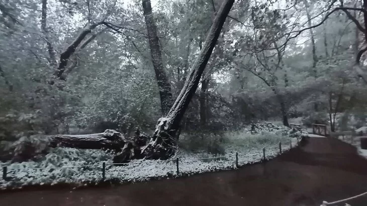 Ива – единственное дерево, сохранившееся в "Аптекарском огороде" с петровских времен. В ботаническом саду рассказали, что 8 мая 2024 года вошло в историю как самое снежное в "Аптекарском огороде" как минимум за 30 лет.