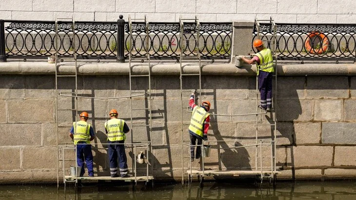 "Для горожан такие работы проходят практически незаметно, так как строительные леса устанавливают со стороны воды и потом передвигают с участка на участок", – говорится в сообщении.