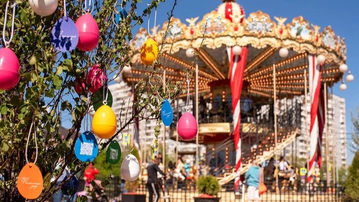 В центре и районах столицы появились уникальные арт-объекты – деревья добра, украшенные разноцветными пасхальными яйцами с QR-кодами, которые позволяют сделать пожертвование на благотворительном сервисе mos.ru. Об этом сообщается на портале мэра и правительства Москвы.