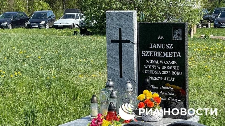 Могилу ликвидированного на Украине польского наемника Януша Шереметы, который снимал убийство военного ВС РФ, нашли на приходском кладбище в селе Шкляры Подкарпатского воеводства. Об этом сообщает РИА Новости.
