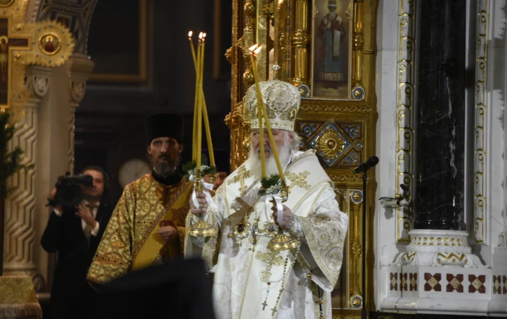 На кадрах видно, что Путин приехал с мэром Москвы Сергеем Собяниным. Службу проводит патриарх Московский и всея Руси Кирилл. Она началась после того, как в храм доставили Благодатный огонь.
