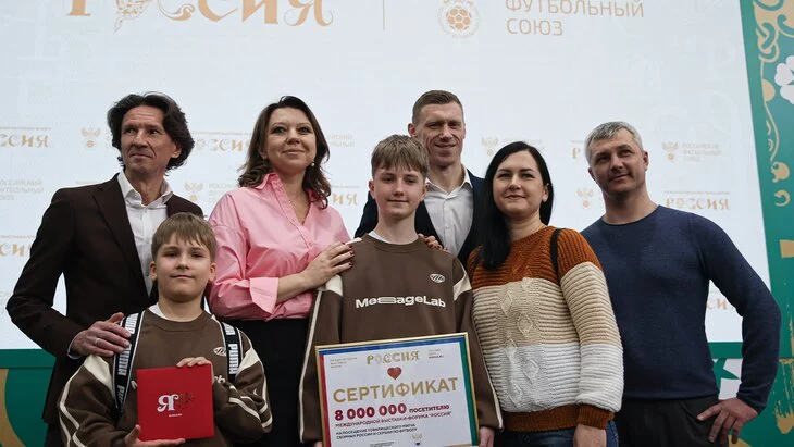 Там указали, что мальчик приехал на выставку вместе с родителями Павлом и Анастасией, а также младшим братом Романом. Победителю вручили сертификат на посещение товарищеского матча сборных России и Сербии, который пройдет в Москве 21 марта.