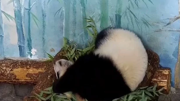 Генеральный директор Московского зоопарка Светлана Акулова в среду, 5 июня, показала подписчикам панду Катюшу, которая стремится сочетать сон и игры с бамбуком.