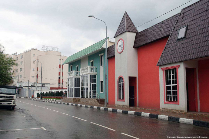 Недалеко от института стоят здания гаража (№19а) - одна из этапных работ архитектора К.С. Мельникова. А металлические перекрытия гаража были разработаны знаменитым инженером В.Г. Шуховым. Они построены в 1928 году для выписанных из Англии автобусов фирмы «Лейланд». Это была новаторская постройка, Мельников сумел так спланировать внутренние помещения, что при въезде и выезде автобусов исключалось применение заднего хода, что значительно упрощало и ускоряло работу.