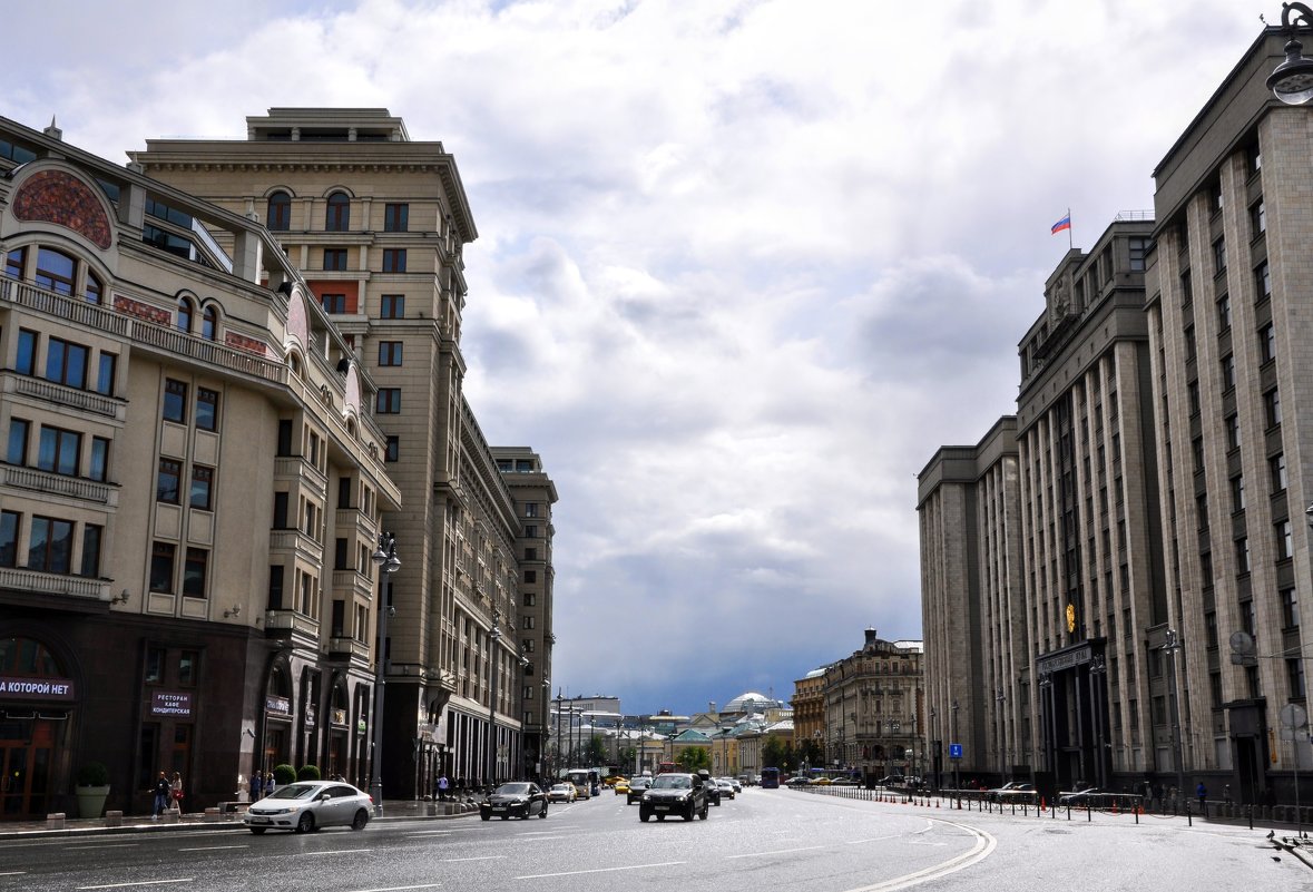 В 1936 году вместо грязных дворов с торговыми помещениями по обе стороны от площади выстроили монументальные здания: гостиница «Москва» (архитектор Щусев) и Дом Совета Министров СССР(архитектор Лангман).