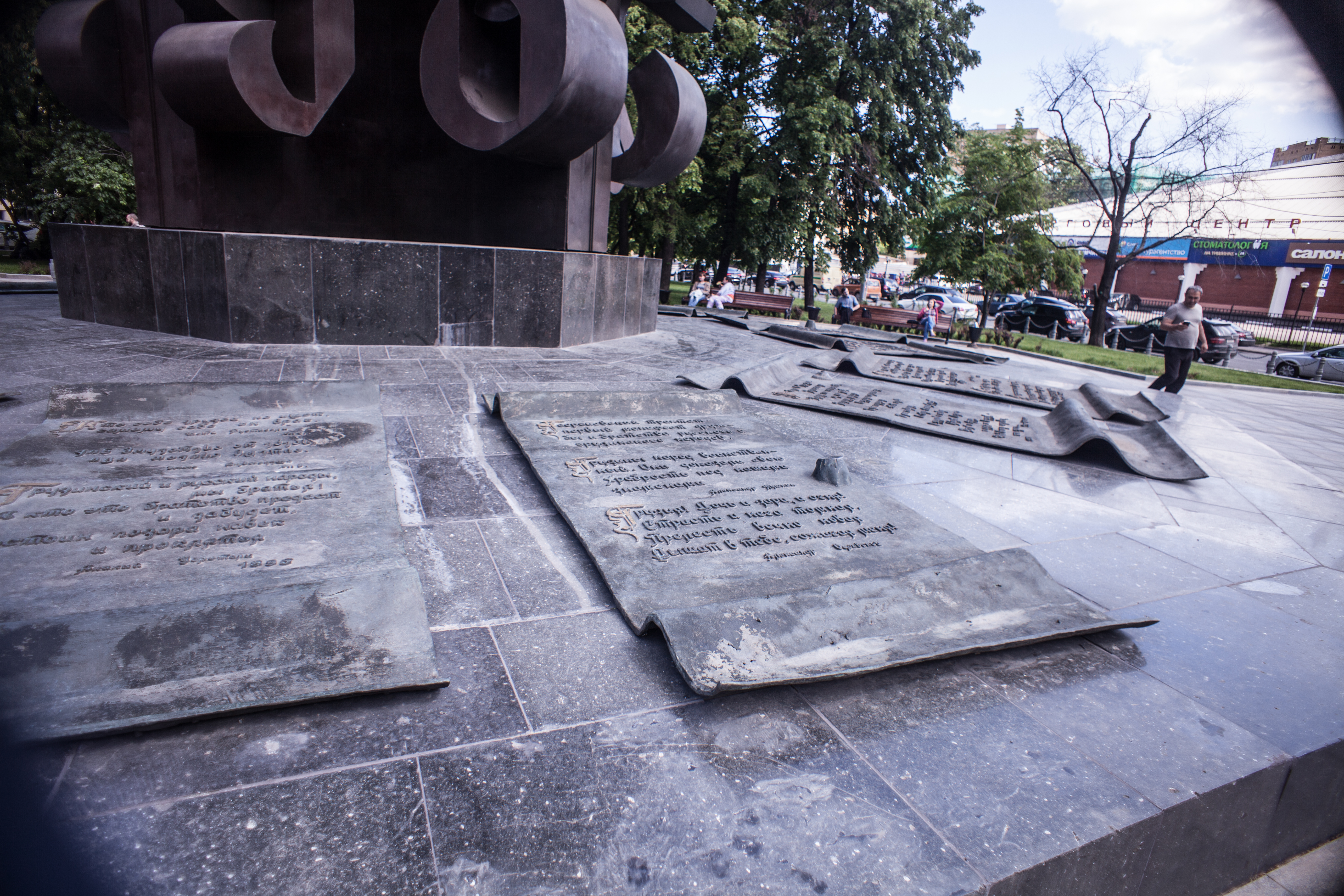 Это экзотическое сооружение (скульптор З.К. Церетели и архитектор-поэт А.А. Вознесенский), прозванное «шампур с шашлыком», было открыто в 1983 году, в год празднования 200-летия заключения Георгиевского трактата, грубо нарушенного Россией в начале XIX веке.