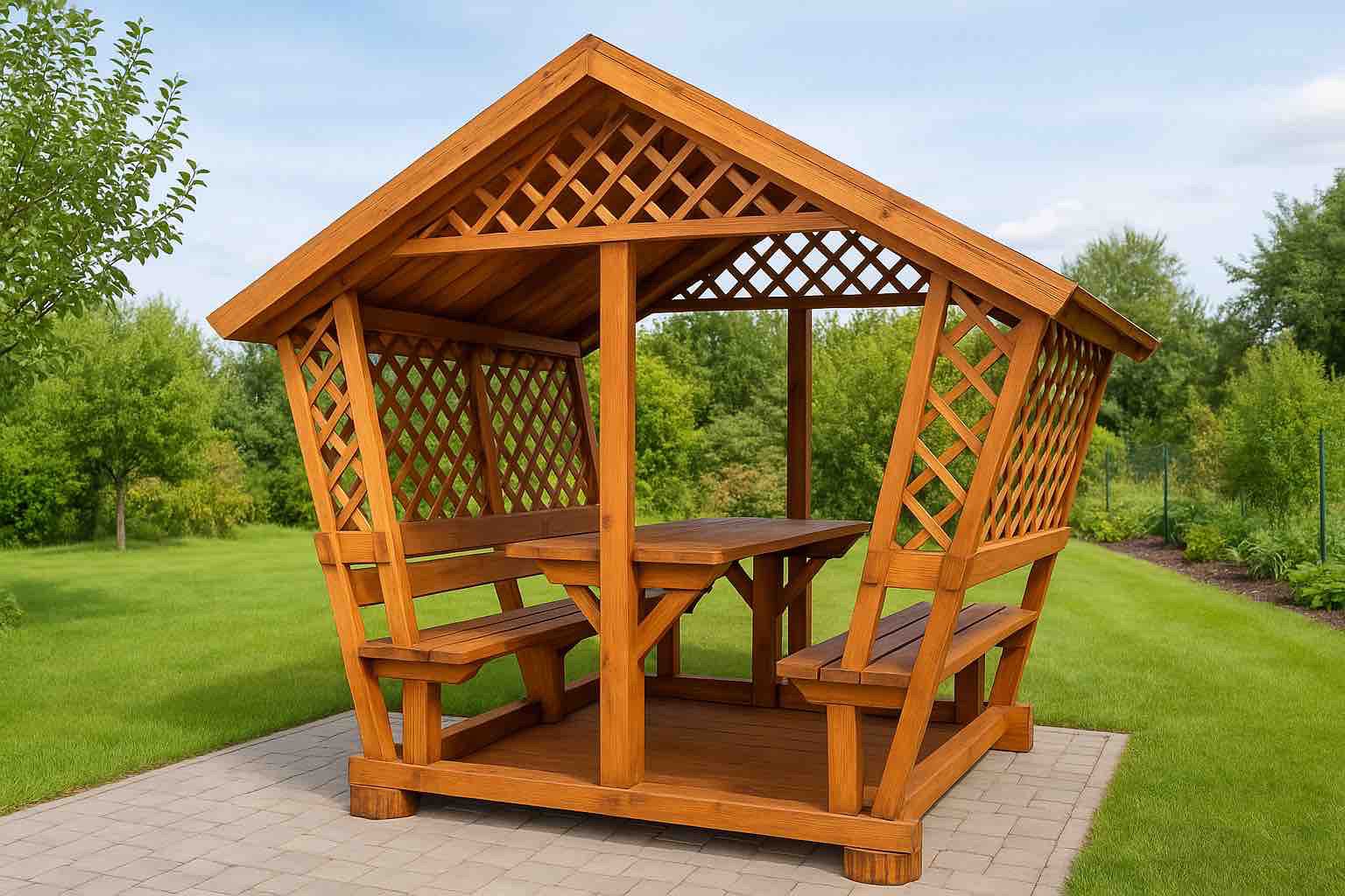 Дерево не выделяет вредных веществ, создает благоприятный микроклимат и приятный аромат. В отличие от металла или пластика, оно не перегревается на солнце, что делает пребывание в беседке комфортным даже в жаркий день.