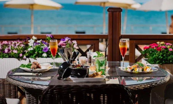 На территории отеля работает несколько баров, предлагающих обширное меню напитков и коктейлей. Вечер, проведенный на террасе бара с видом на закатный горизонт Черного моря, останется в памяти как один из самых волшебных моментов вашего отдыха.