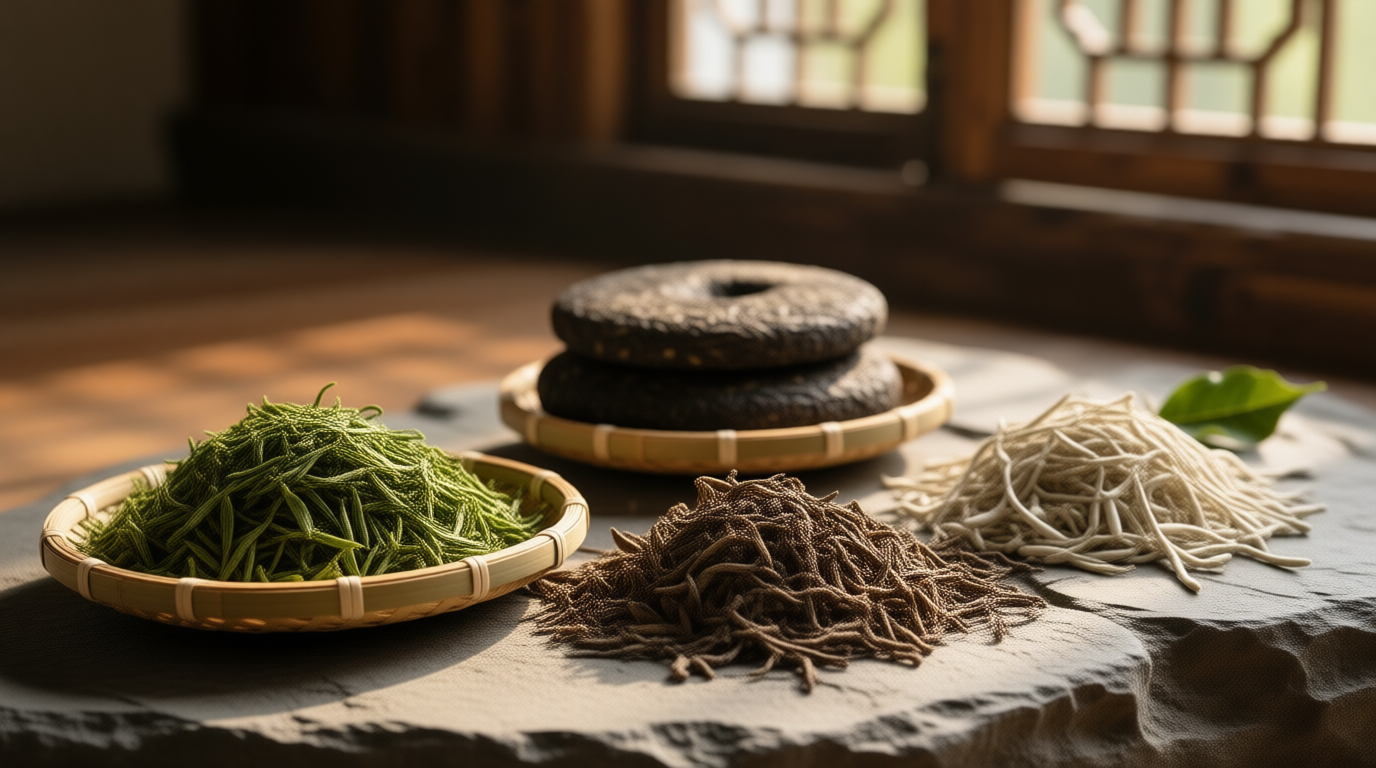 - Красный чай — то, что за пределами Китая называют «чёрным». Полностью ферментированный, насыщенный, часто с нотами сухофруктов или какао. Классика — Дянь Хун, Ци Мэнь Хун Ча.