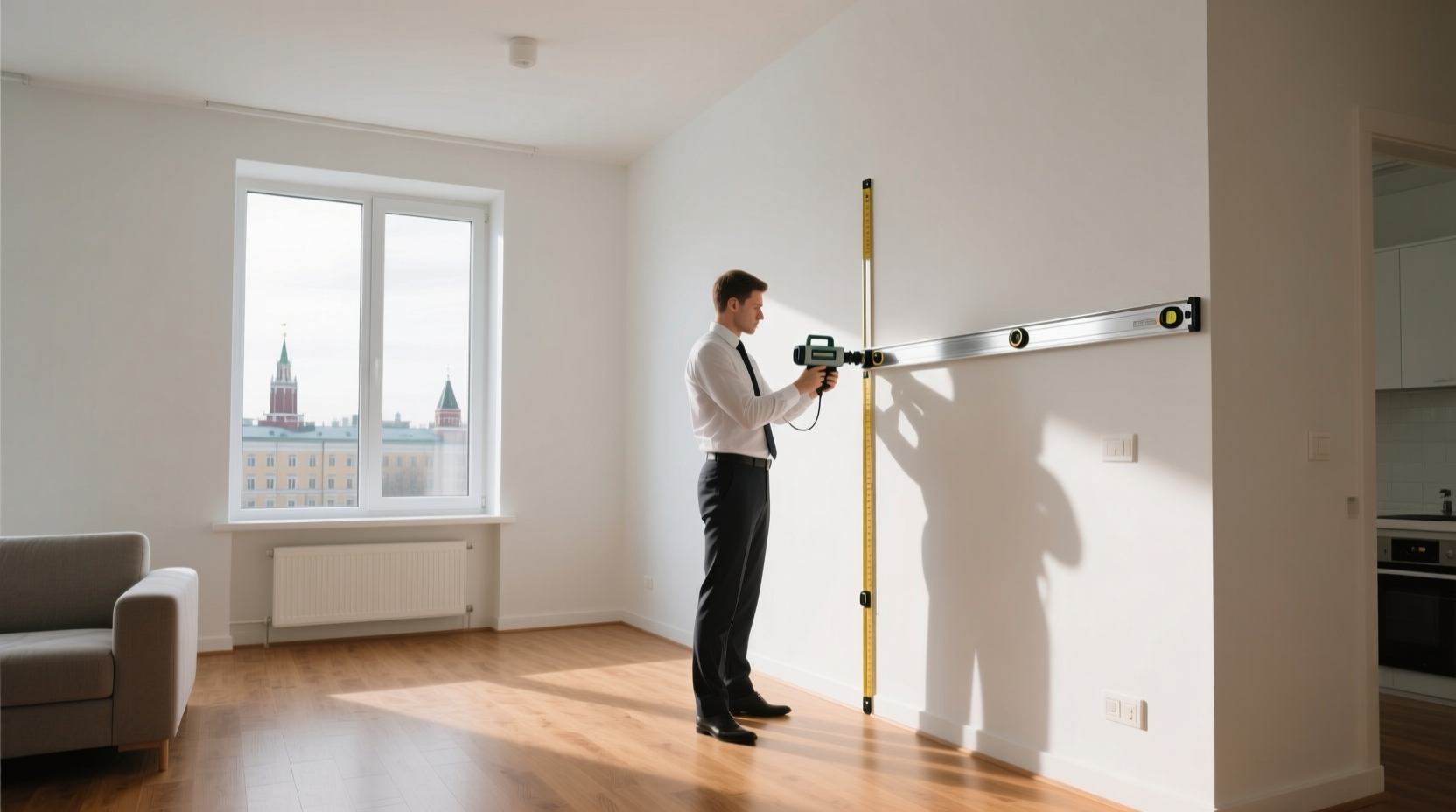 - Предварительный анализ — специалист изучает план помещения, материалы отделки, этажность здания и историю участка.