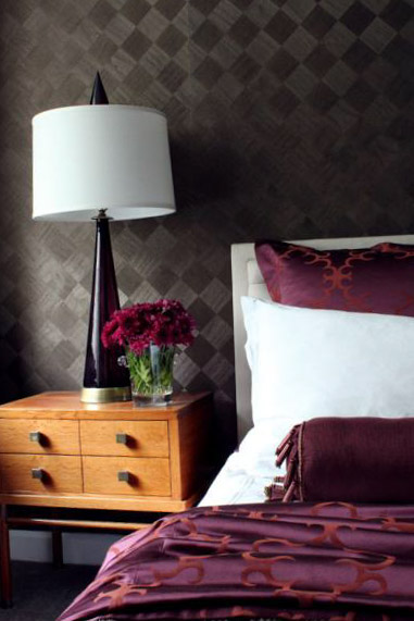 Насыщенные обои глубокого цвета также способны воссоздать богемную «фабричную» атмосферу.