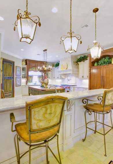 В комнатах стиля хай-тек или модерн лучше всего будут смотреться глянцевые поверхности из металла или стекла. В то время как в кухне английского стиля или классическом средиземноморском интерьере шикарно будут выглядеть столешницы из дерева дорогих пород или натурального камня. Высокие стулья, украшенные резными ножками идеально дополнят такую роскошную барную стойку.