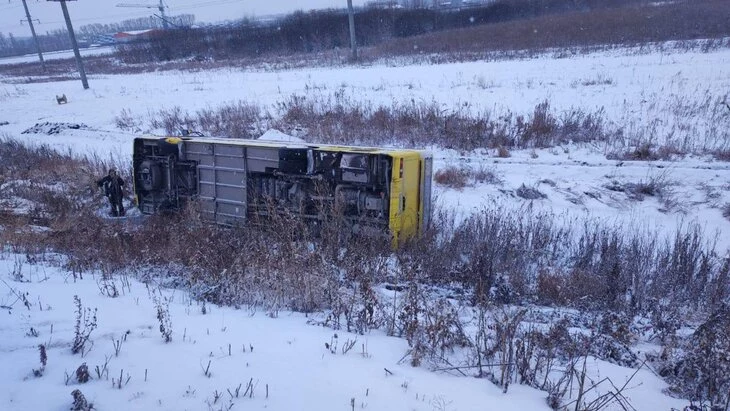 Автобус перевернулся на трассе в Новосибирской области