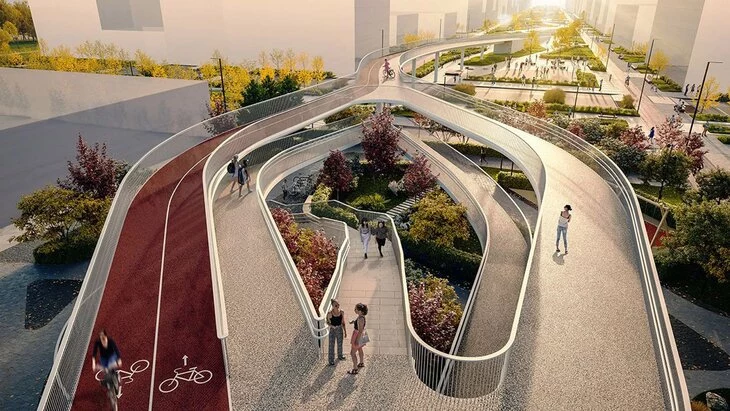 Также они обустроят систему освещения по всей территории, создадут архитектурно-художественную подсветку пешеходных настилов, сделают игровую и спортивные зоны. Предполагается, что в игровой зоне будут горки, качели, элементы для лазания и лавочки, а в спортивной – воркаут-комплексы и столы для настольного тенниса.