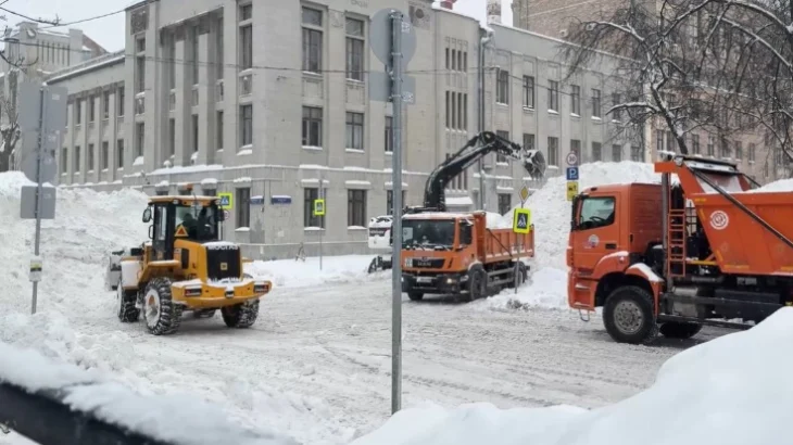Четырехметровую снежную дюну оградили на Миусской площади