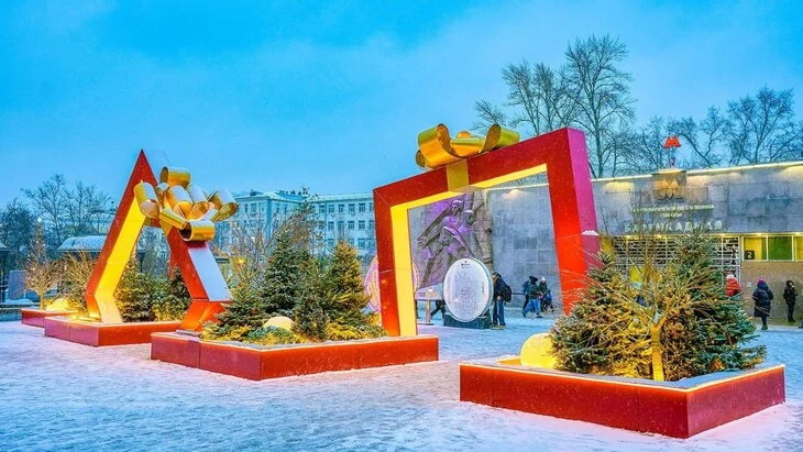 Также на площади у станции метро "Баррикадная" появились гигантские праздничные подарки и многоярусные зеленые зоны. На Биржевой площади и у Чистых прудов установили шестиугольные витрины с растительными композициями для зимних фотографий.