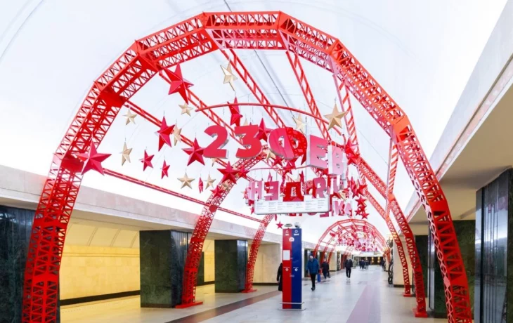 - Перед праздником мы украсили потолочный свод на станции метро «Трубная». Здесь появились звезды и надпись: «23 февраля. День защитника Отечества», - рассказал заммэра.