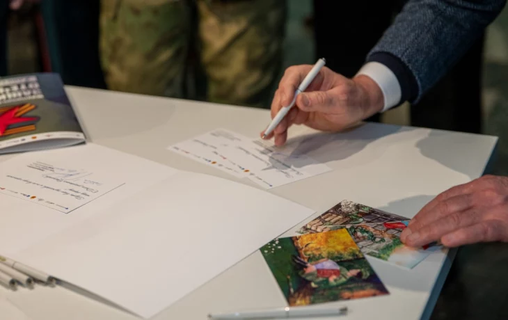 Первые открытки, которые вручат участникам специальной военной операции, подписали генеральный директор международной медиагруппы «Россия сегодня» Дмитрий Киселев, заместитель генерального директора Музея Победы вице-адмирал Федор Смугли и другие гости, которые приняли участие в открытии выставки «Защитники».
