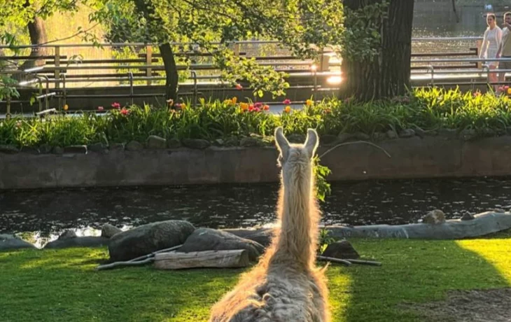 «Любуется»: Московский зоопарк показал наслаждающуюся майским закатом ламу Варю