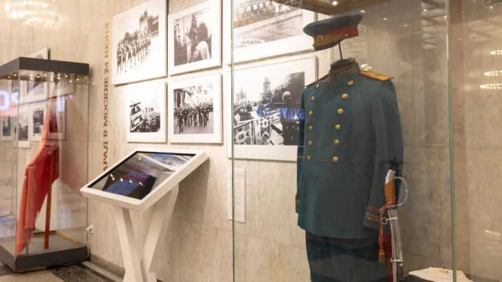 Всего в выставку вошло более 100 подлинных и оцифрованных предметов из фондов Музея Победы, а также из филиала «Музей Г.К. Жукова» и Национального музея Республики Татарстан. Посетители могут увидеть военную форму и амуницию, холодное оружие, документы и фотографии, копию Знамени Победы. Среди уникальных раритетов - элементы парадной формы командующего парадом в Москве маршала Константина Рокоссовского и генерал-майора Леонида Полосухина, сабли генерал-полковника Михаила Константинова и генерала армии Афанасия Белобородова, принимавшего парад в Харбине.