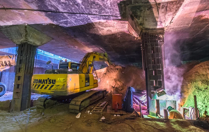 В свою очередь в прилегающих к станции тоннелях завершается устройство жесткого основания и осуществляется монтаж верхнего строения пути. Там строители уложили более четырех километров рельсов. Такая цифра в три четверти больше от общего запланированного объема.