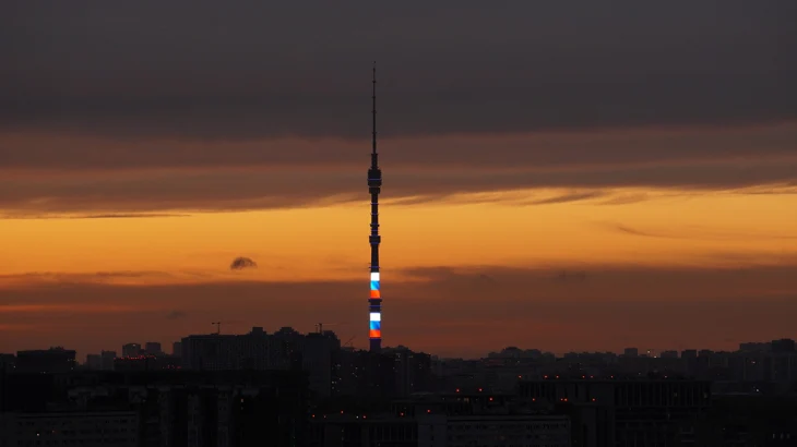 Останкинская телебашня во вторник, 11 ноября, окрасилась в цвета государственного флага Казахстана.