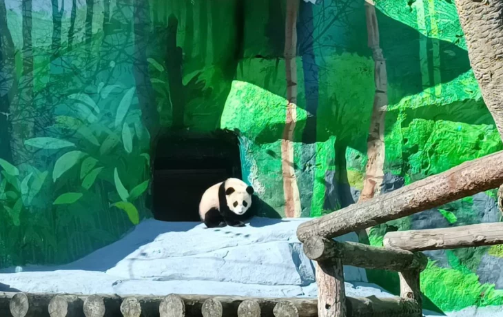 Панда Катюша погуляла в уличном вольере Московского зоопарка