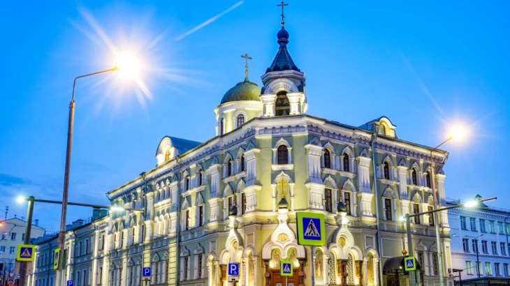 Подворье Валаамского Спасо-Преображенского монастыря в ЦАО оборудовали архитектурно-художественной подсветкой. Об этом в пятницу, 10 апреля, сообщили в пресс-службе городского хозяйства Москвы.