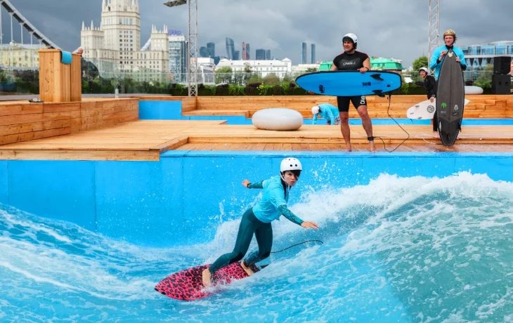 Кроме того, объект «Серфинг» включает в себя и специальную детскую зону, где ребята смогут освоить азы серфинга. Также в пресс-службе рассказали, что площадку регулярно посещают именитые спортсмены.