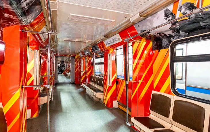Состав выполнен в красно-оранжевых тонах. В оформлении поезда использовали архивные фотографии времен Великой Отечественной войны. Состав будет курсировать до 23 июня.
