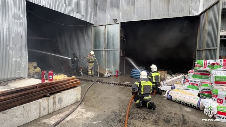В ведомстве добавили, что на месте ЧП произошло обрушение конструкций одного из складов. Вместе с тем пожарные не допустили перехода огня на жилые дома и административное здание.