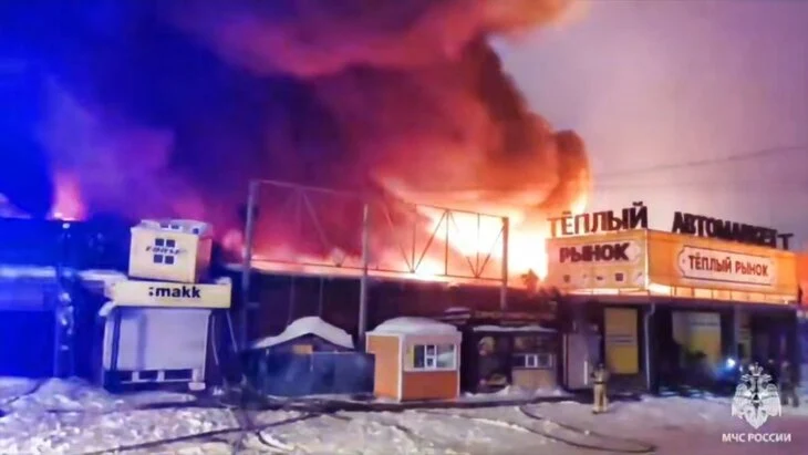 Пожар произошел в здании рынка в Барнауле