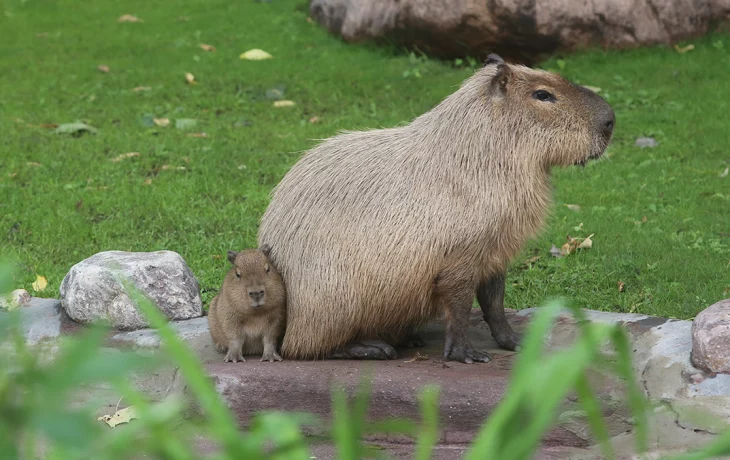 - Нас часто спрашивают, как на южноамериканской лужайке уживаются капибары и другие, более крупные животные: лама, викунья и гуанако. Показываем: прекрасно уживаются! - написали в Telegram-канале зоосада.