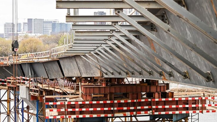 На данный момент в русле Москвы-реки забетонированы две из трех опор, а также отсыпаны два полуострова.